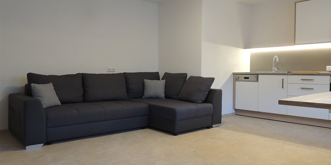 Jede Menge Komfort bietet diese geräumige im 1. Stock gelegene Apartmentwohnung für Familien, Paare und Freunde. Sie verfügt über zwei Schlafzimmer, einem Badezimmer mit Dusche und ein separates WC. Im Wohnzimmer finden Sie eine gemütliche Wohnlandschaft, einen Flat-TV mit Radio und zusätzliche 2 Schlafmöglichkeiten über das ausziehbare Sofa. Sie haben eine Terrasse die um die Wohnung herum verläuft.